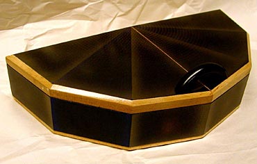 7-Sided box, 1999 iridescent acrylic, birch plywood, maple, mahogany 3.25"h X 12.5"w X 6.25"d