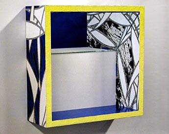 Prophetic Aesthetic Revision (frame of reference), 1995 acrylic, vinyl film, co-polymer toner, paper on wood with mirror 15"h X 15"w X 5"d